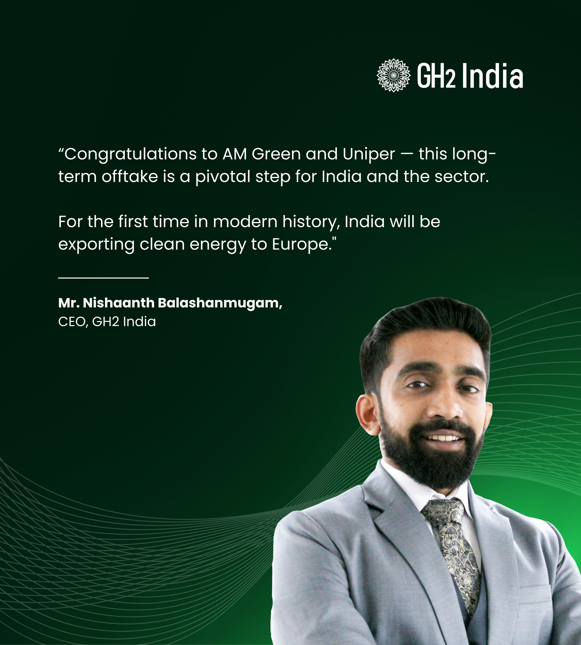 From GH2 India’s perspective, the AM Green–Uniper offtake demonstrates how India’s green hydrogen ecosystem is moving from early momentum toward market-linked outcomes. Agreements of this scale reinforce India’s export potential and highlight the importance of standards alignment, certification, and international collaboration.