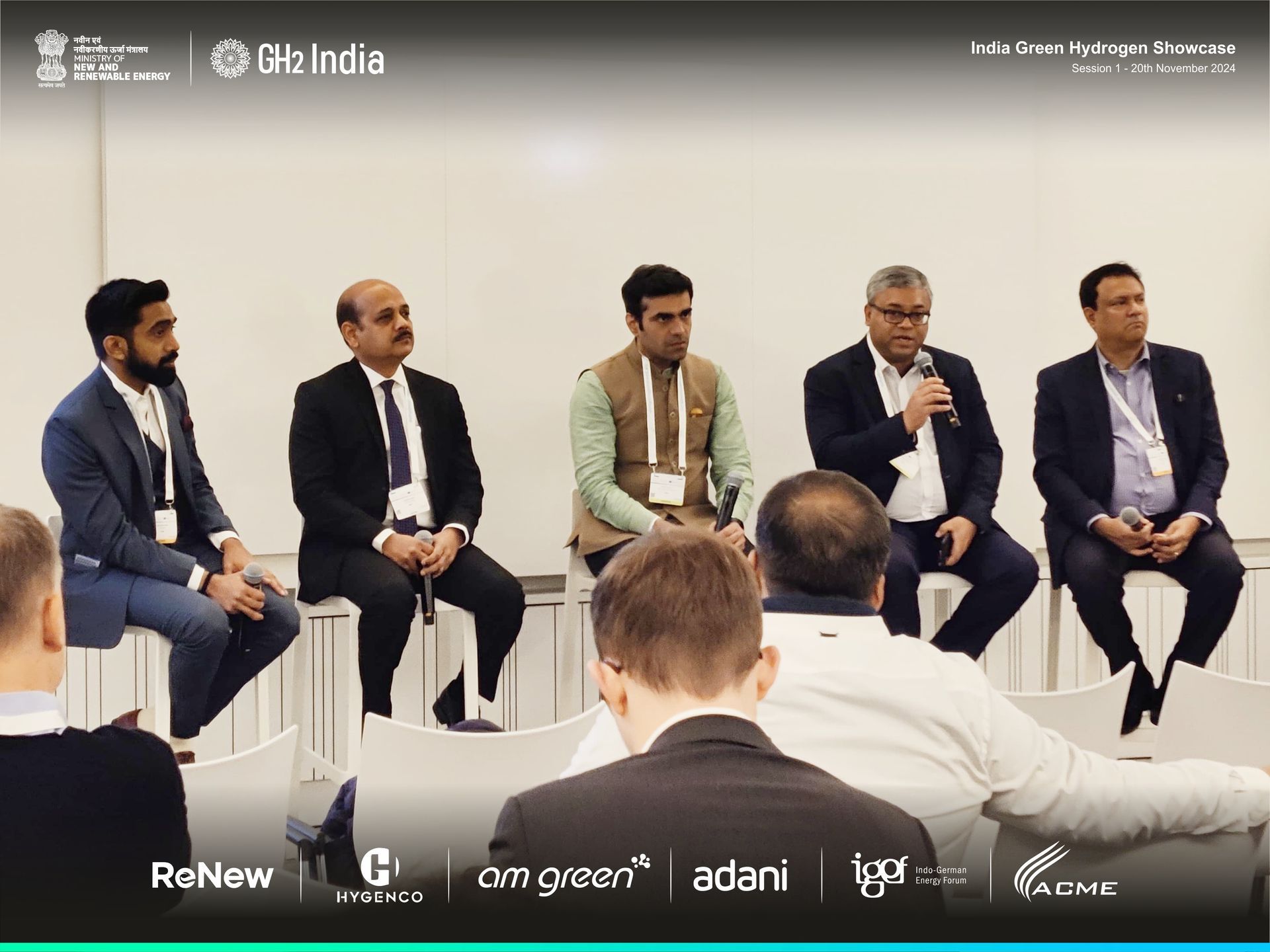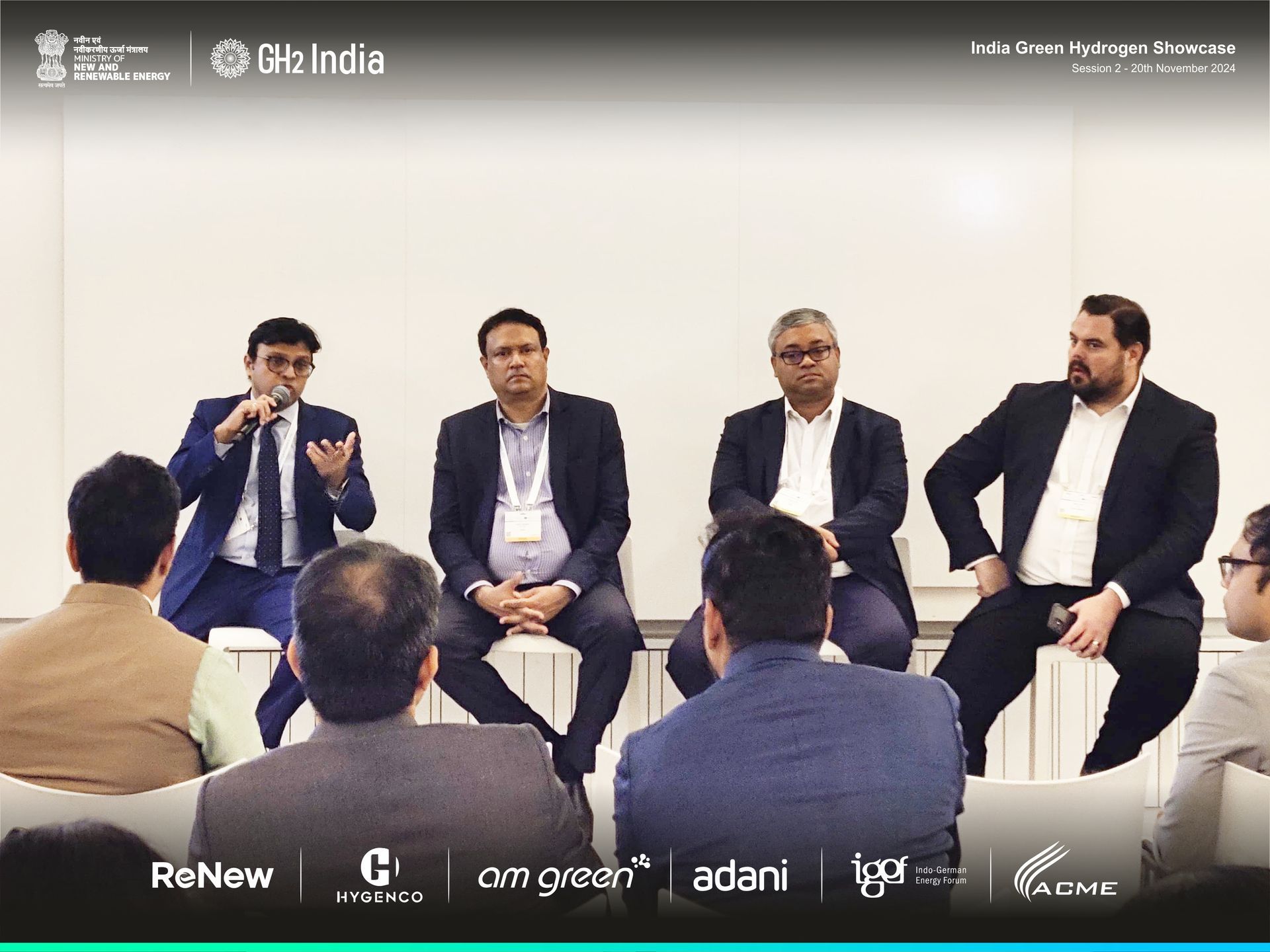 Panel: Anirudh Vuyyala, Adani; Arnava Sinha, AM Green, Barry Lavery, ReNew; Hiren Mehta, ACME and Harish Jayaram, Hygenco