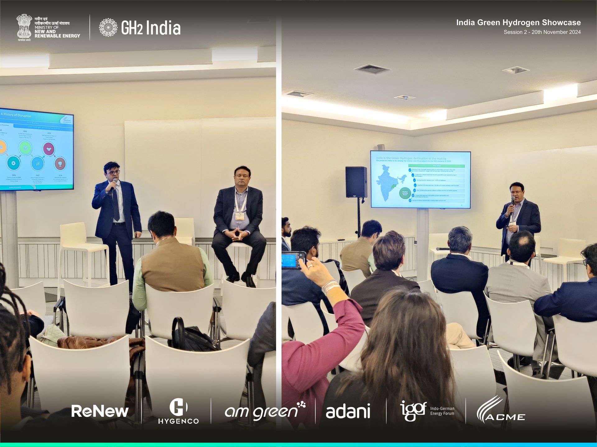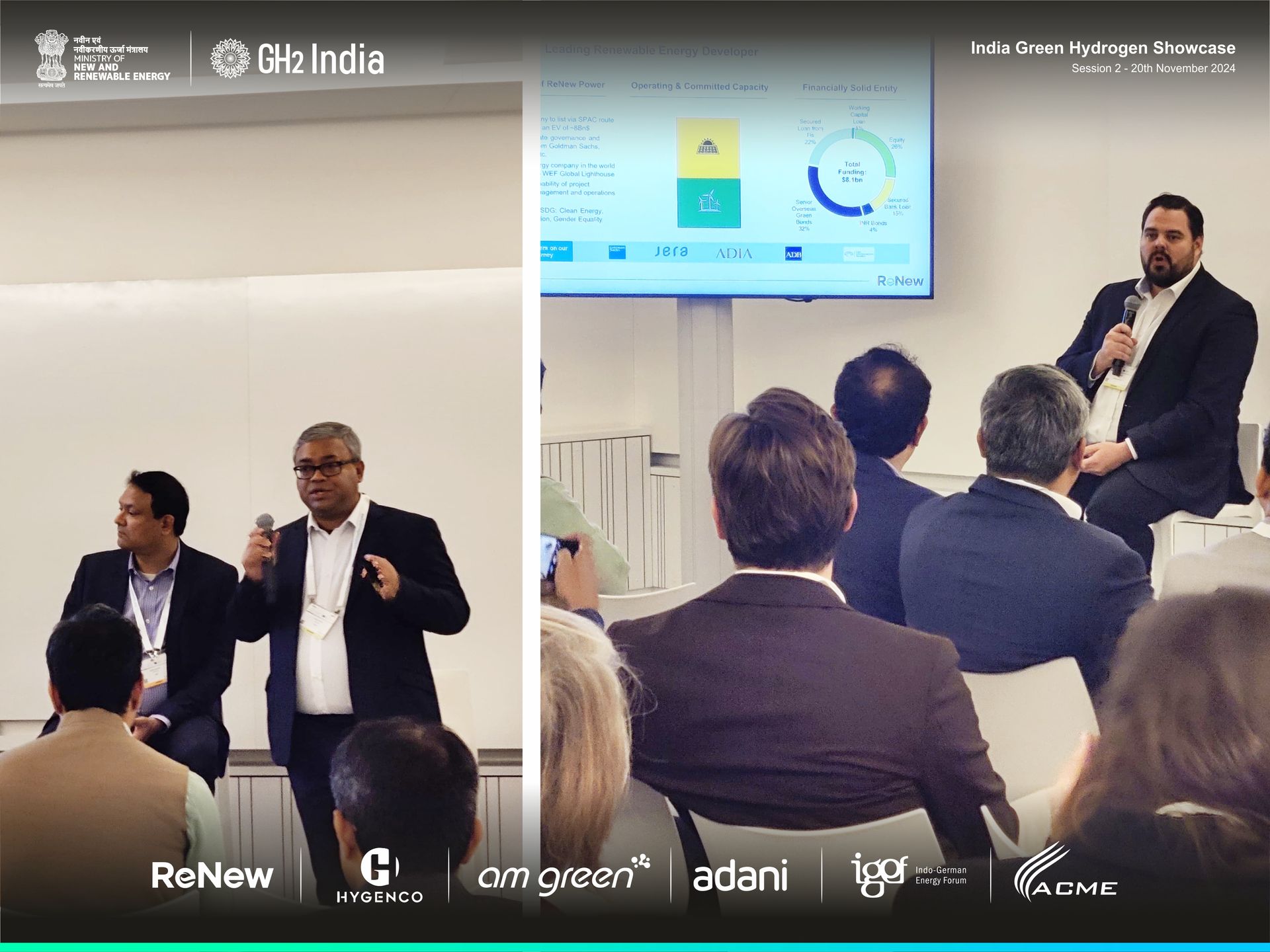Leading Indian companies, including AM Green, ReNew, ACME, Adani, and Hygenco, showcased their green hydrogen projects. Topics covered included successful case studies, technological advancements, and strategic partnerships. The companies presented their ongoing projects and highlighted the government's support for clean energy initiatives.